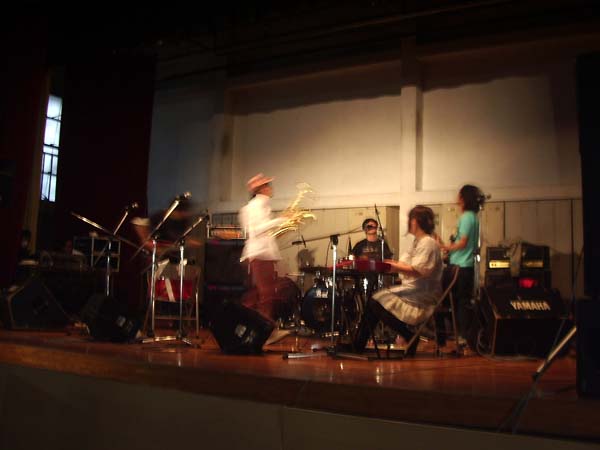 イベント当日、スポットライトを体育館に持ち運んだまま、準備時間にセットするのをすっかり忘れていて、トップバッターのヤマタイコクの時に気付き、慌ててセッティングする。まあ昼間だったし身内だったから良かったけど。
